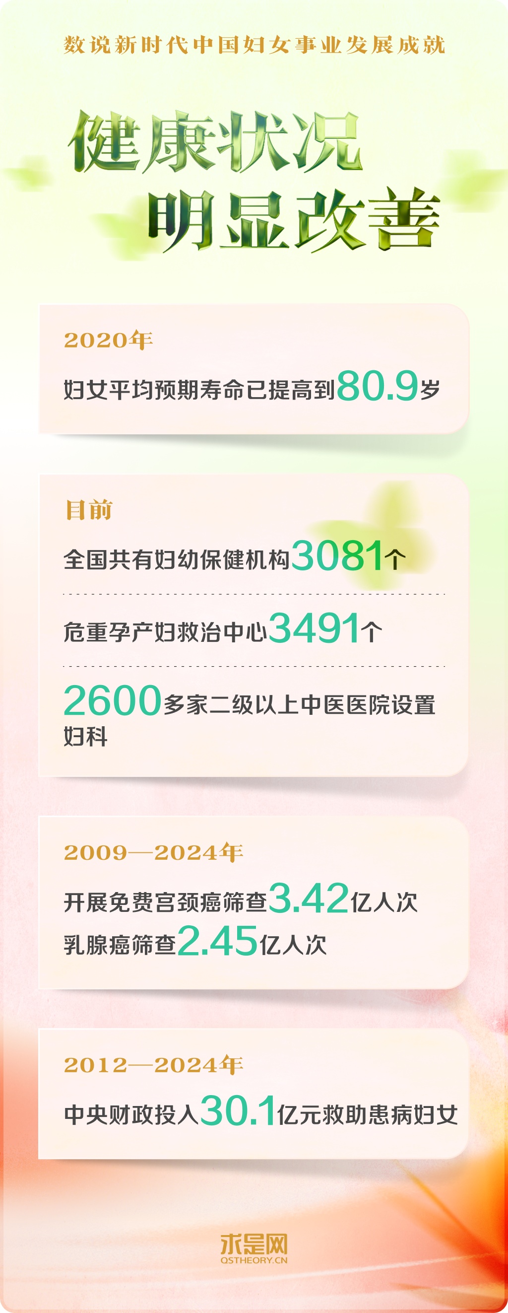 党的十八大以来,以习近平同志为核心的党中央把保障妇女合法权益、促进男女平等和妇女全面发展,作为中国式现代化的重要内容,对妇女事业发展作出一系列开创性、全局性、长远性的重大决策部署。中国在幼有所育、学有所教、劳有所得、病有所医、老有所养、住有所居、弱有所扶上持续用力,不断实现广大妇女对美好生活的向往。一组组数字,记录下新时代中国妇女事业跨越式发展的重大成就。